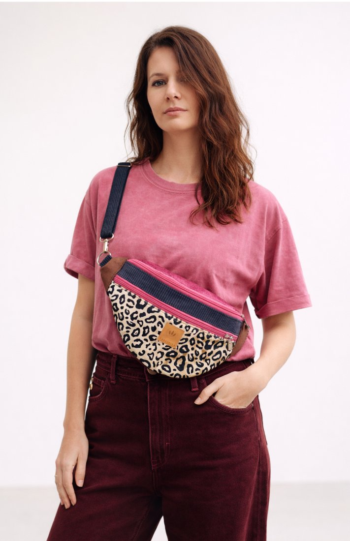 Uszyta z wyselekcjonowanych materiałów o wyraźnej fakturze, zachwyca harmonijną paletą barw: naturalnym brązem, grafitową czernią, ciepłym panterkowymakcentem i energetycznym różem.