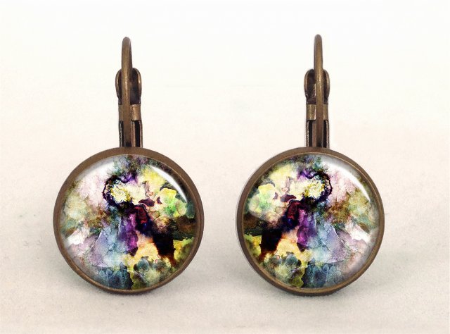 Ręcznie robione kolczyki wiszące z wysokiej jakości grafiką pokrytą wypukłym, powiększającym szkiełkiem.
