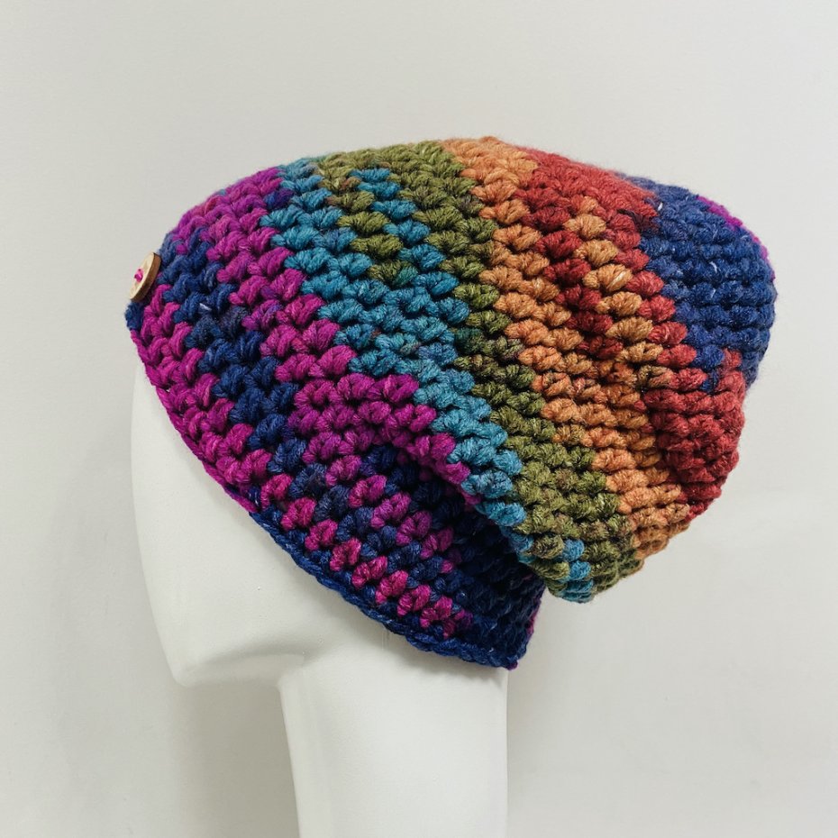 Czapka jest dostępna w jednym egzemplarzu. Tak jak nie ma drugiego identycznego motka, nie ma drugiej identycznej czapki.