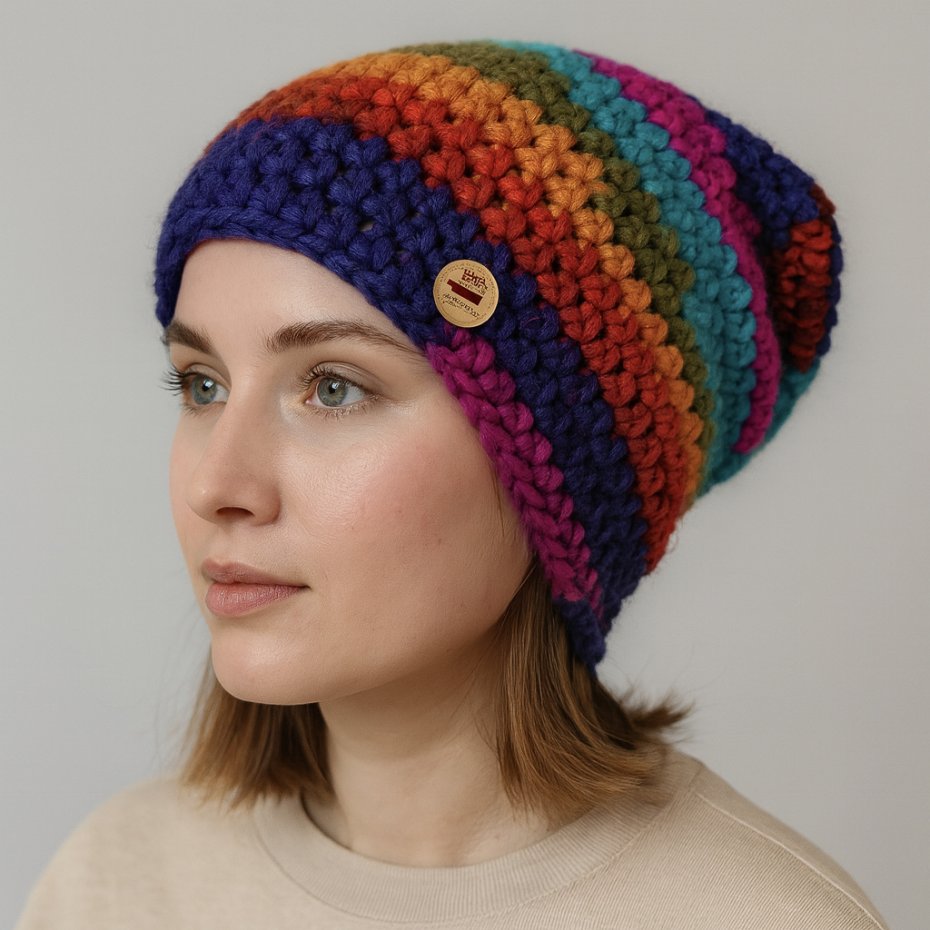 Czapka jest dostępna w jednym egzemplarzu. Tak jak nie ma drugiego identycznego motka, nie ma drugiej identycznej czapki.