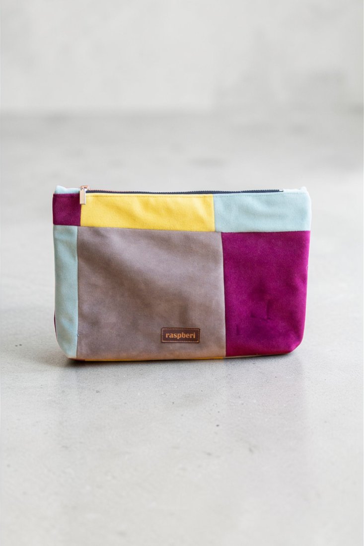 Duża kosmetyczka podróżna wykonana z weluru.
