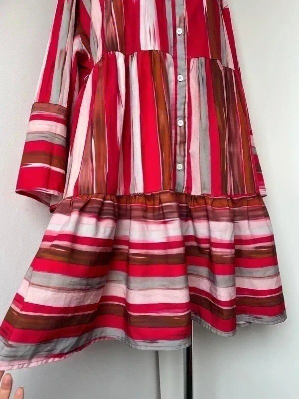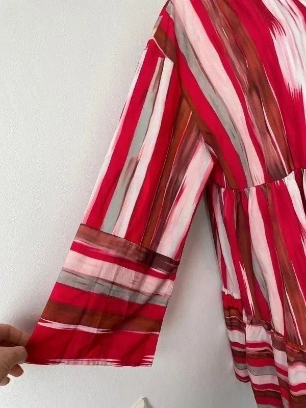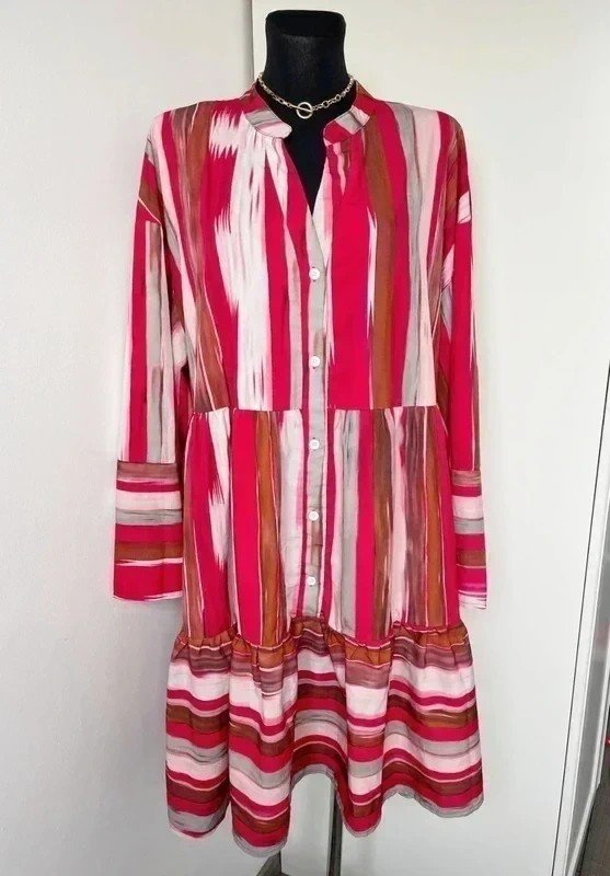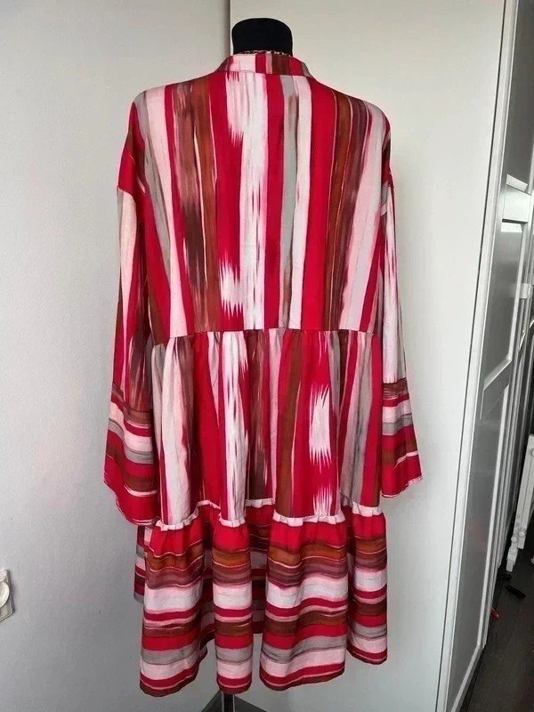 Piękna kolorowa luźna kobieca sukienka na wiosnę w rozmiarze XXL.