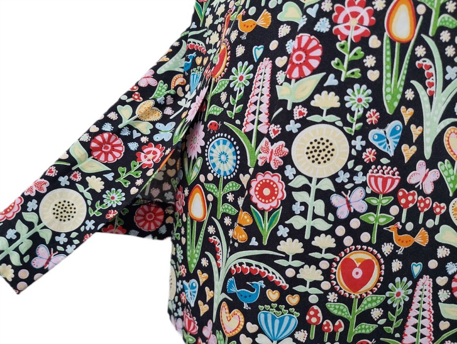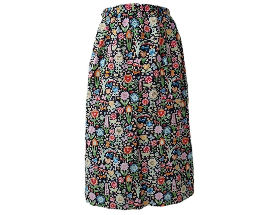 Urocza spódnica w kolorowy deseń w stylu folk. Znajdziesz tu kwiatki, motylki, biedronki, grzybki, ptaszki i serduszka.