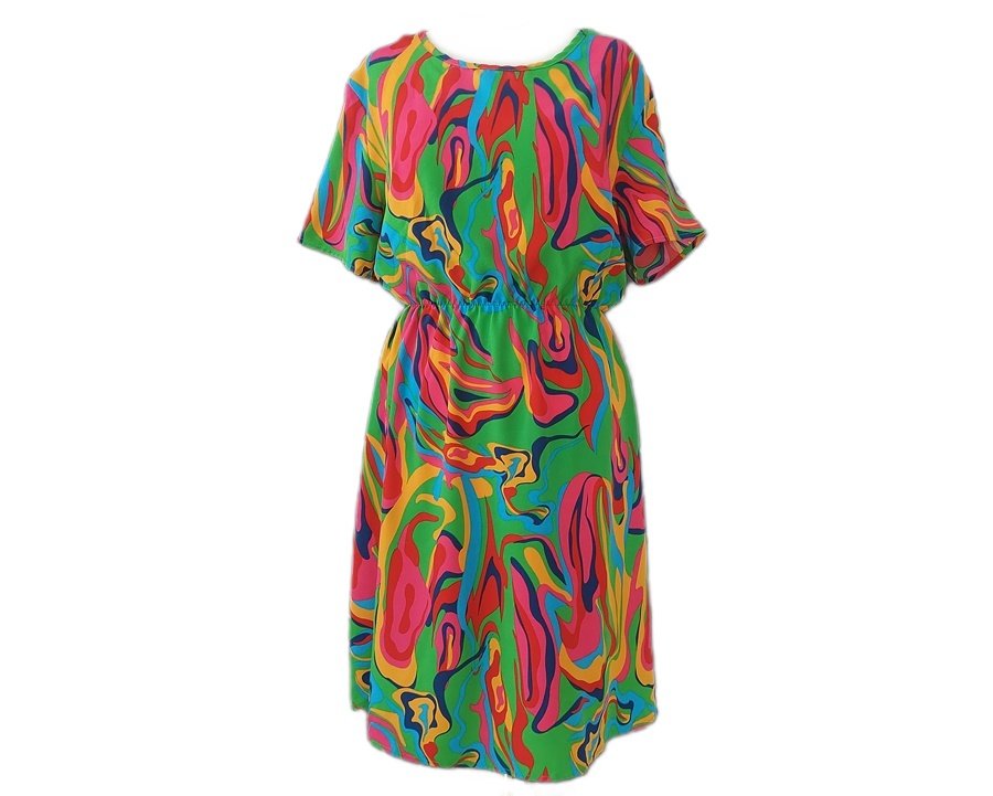 Sukienka dla osób kochających kolory. Jest wyjątkowo energiczna i pełna ekspresji.