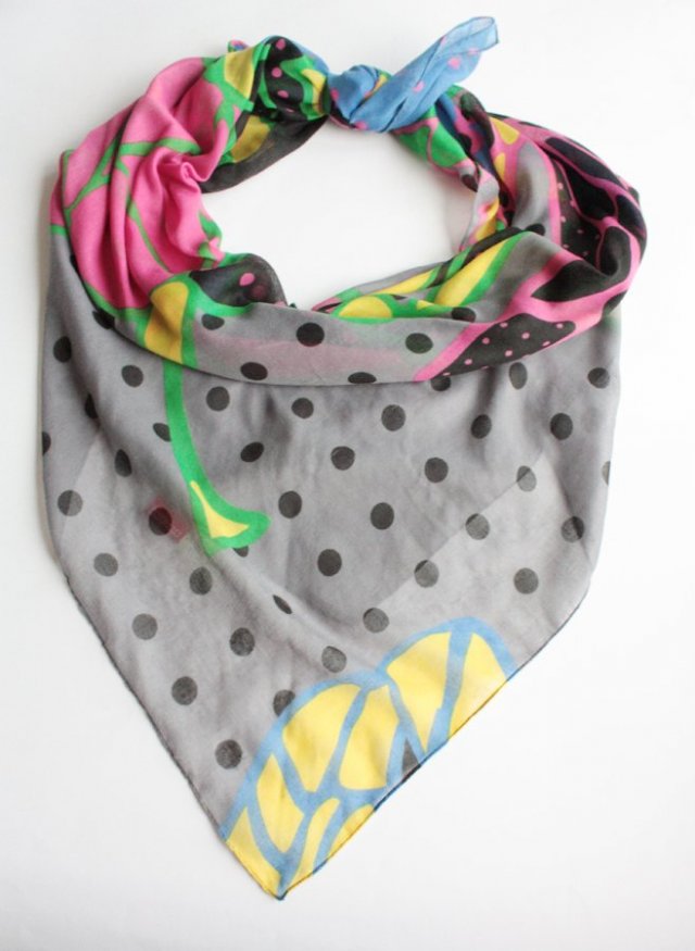 Miękka, duża chusta we wzory, które umożliwiają różne aranżacje (wzory wydają się różne w zależności od sposobu złożenia chusty). Materiał oceniam na wiskozę.