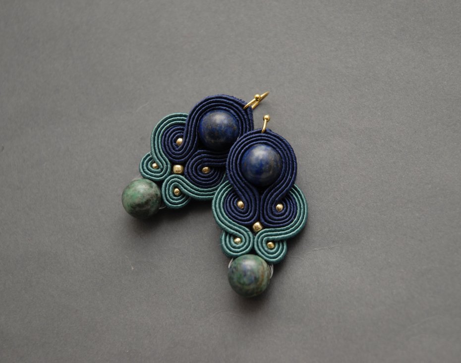 oferuję klipsy zrobione techniką sutasz, ozdobione chryzokolą i drobnymi koralikami