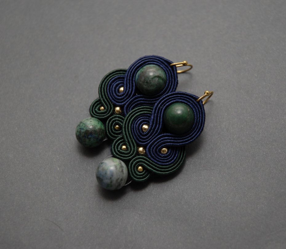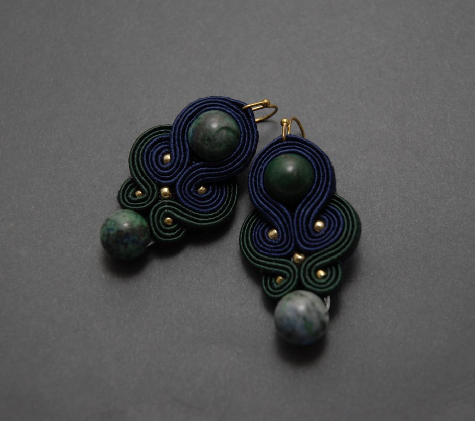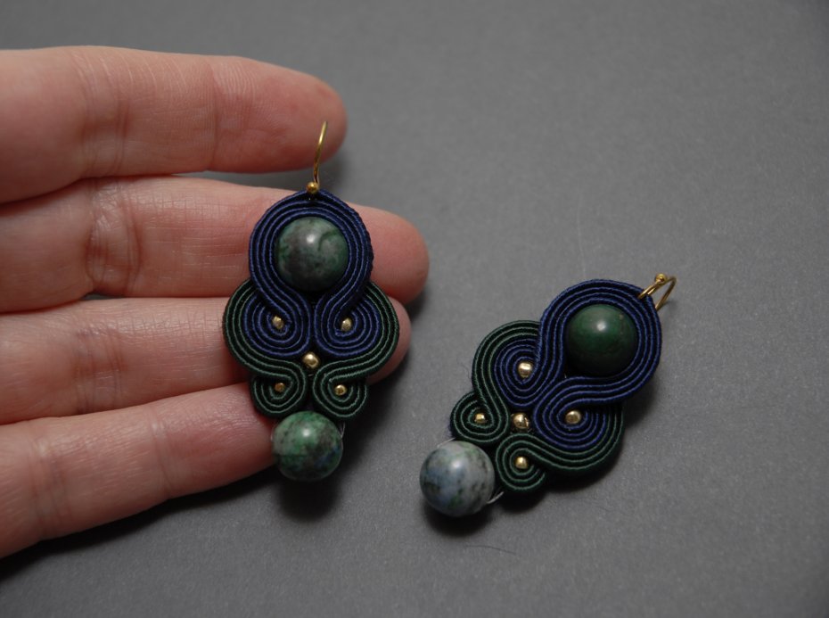 oferuję klipsy zrobione techniką sutasz, ozdobione chryzokolą i drobnymi koralikami