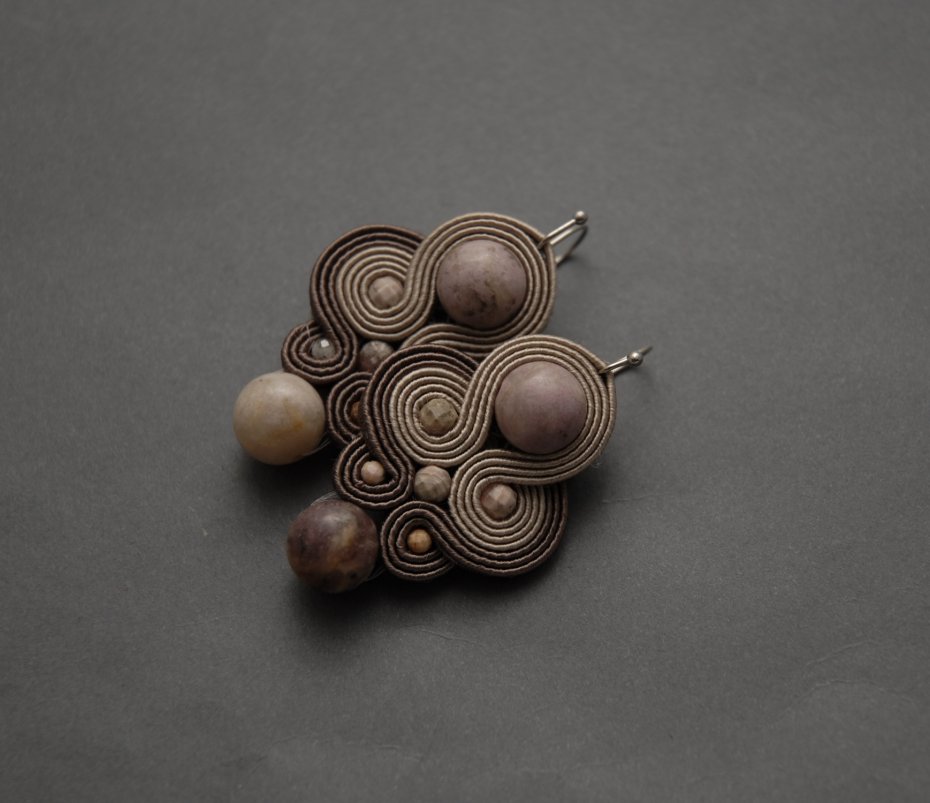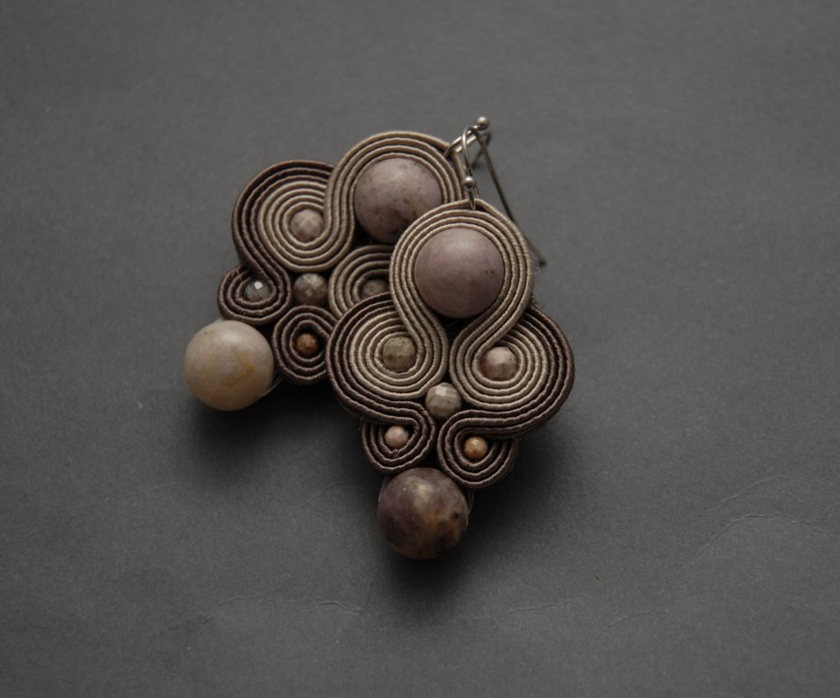 oferuję klipsy zrobione techniką sutasz, ozdobione lepidolitami i rodonitami