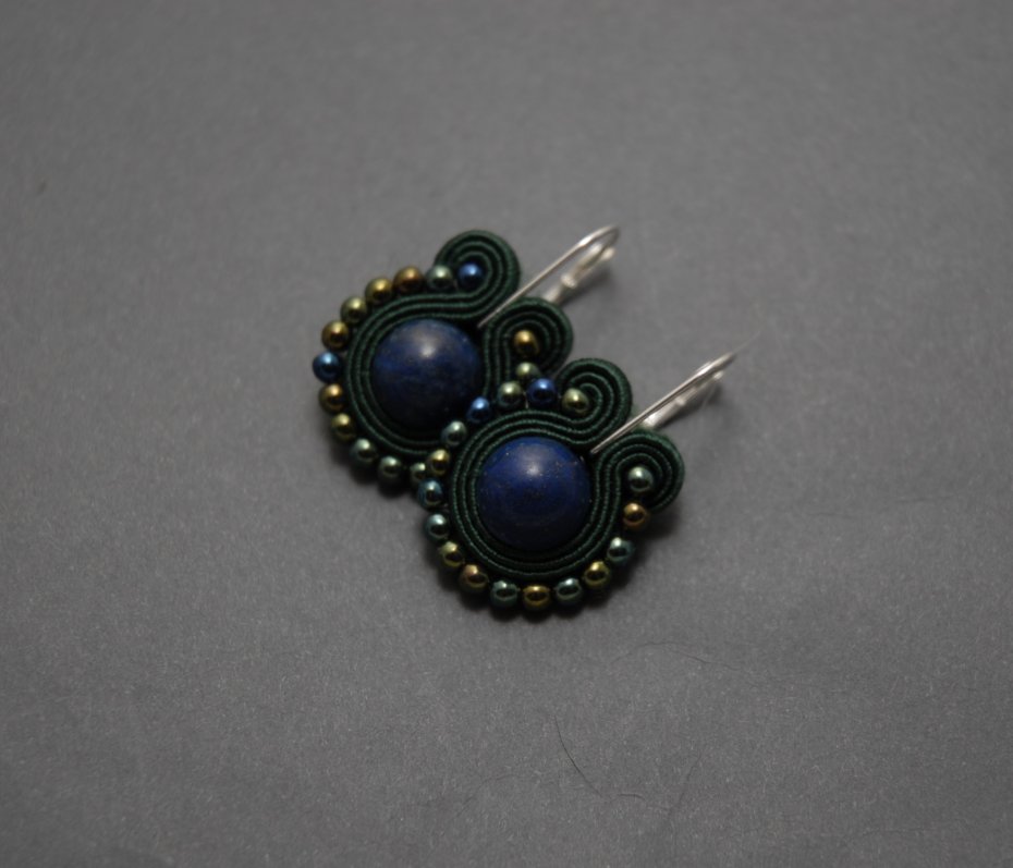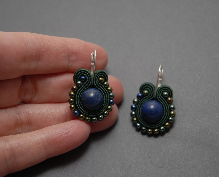 oferuję kolczyki zrobione techniką sutasz, ozdobione chryzokolą i drobnymi koralikami
