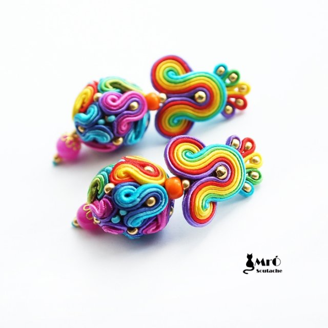 Kolczyki wykonane są metodą haftu soutache. Okazałe i orientalne.