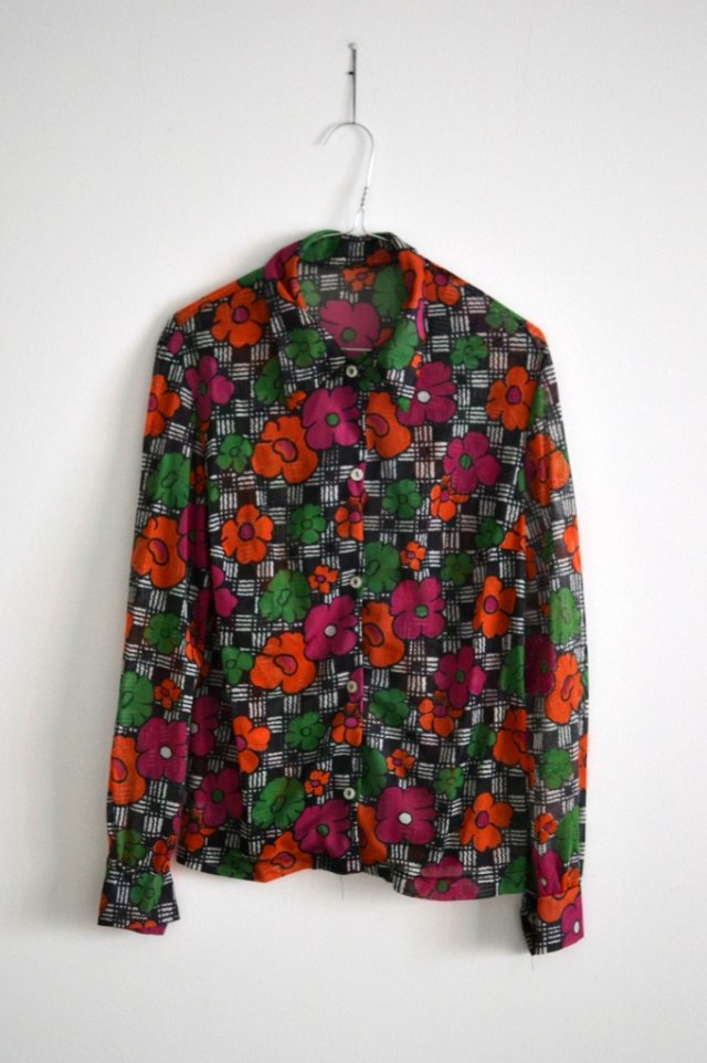Bluzka w kolorowe kwiatki, z kołnierzykiem.