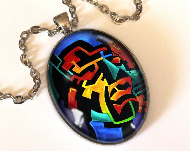 Ręcznie robiony duży owalny medalion z wysokiej jakości grafiką.