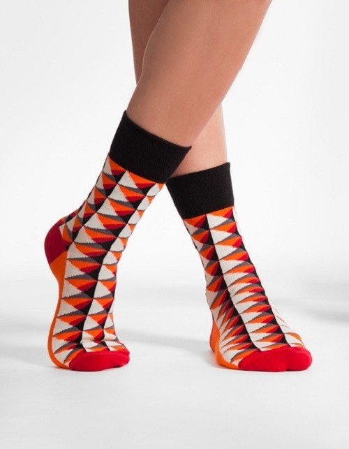 Skarpeta łączy ciemne kolory – czarny i szary – poprzez beż, aż do ciepłych – pamarańczowego i karmazynu. Niebanalny wzór sprawi, że zawsze wyróżnisz się w tłumie i będziesz obiektem zazdrości na domówce. Niezastąpiona do czytania i oglądania Gry o Tron. Polecamy wszystkim matkom smoków.