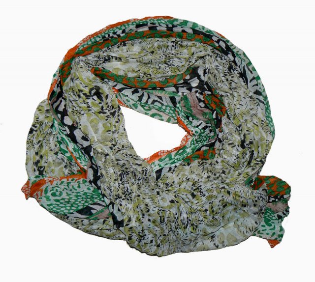 Bawełniany duży szal, miękki i miły w dotyku. Materiał jakby pomięty.