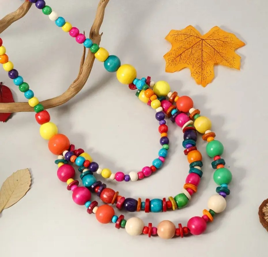 Odkryj magię ręcznie robionej biżuterii, która doda koloru Twojej codziennej stylizacji. Ten wyjątkowy naszyjnik, wykonany z precyzją i pasją, łączy w sobie różnokolorowe, drewniane koraliki, tworząc harmonijną kompozycję inspirowaną tęczą. Jest idealny dla kobiet, które cenią sobie oryginalność, naturalne materiały i unikalny design.