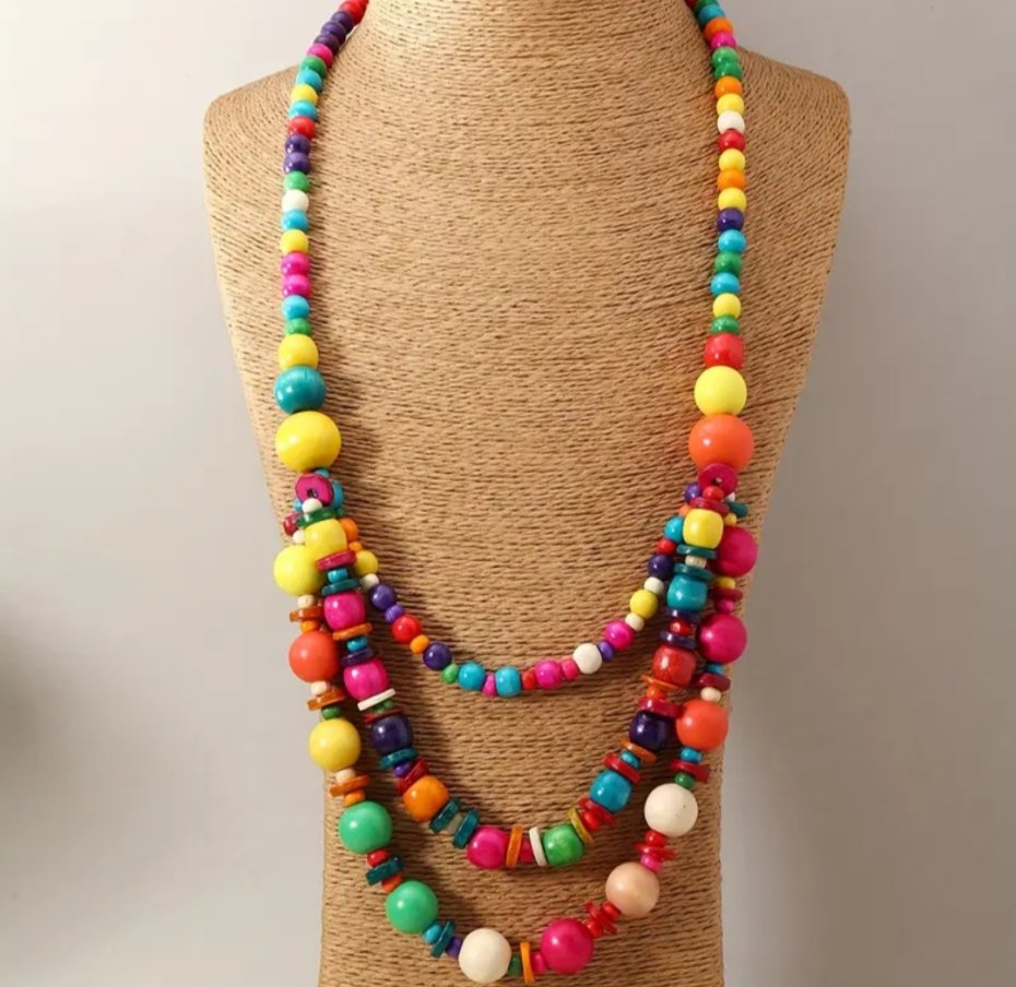 Każdy koralik jest starannie dobrany, a różnorodność kształtów i rozmiarów sprawia, że naszyjnik jest dynamiczny i pełen życia. Będzie wspaniale prezentował się zarówno z prostym T-shirtem, jak i elegancką sukienką, dodając charakteru każdej stylizacji. To idealny dodatek na lato, festiwale, a także jako kolorowy akcent w ponure dni.