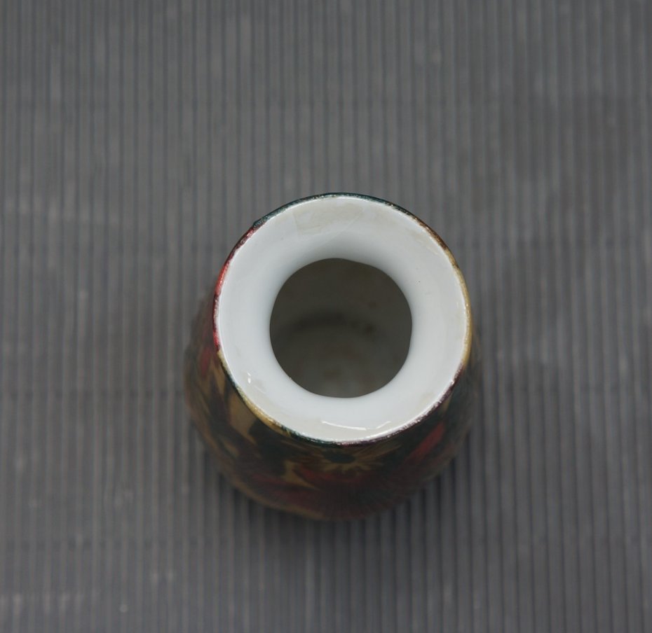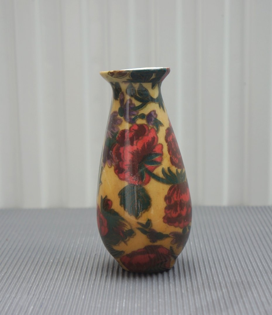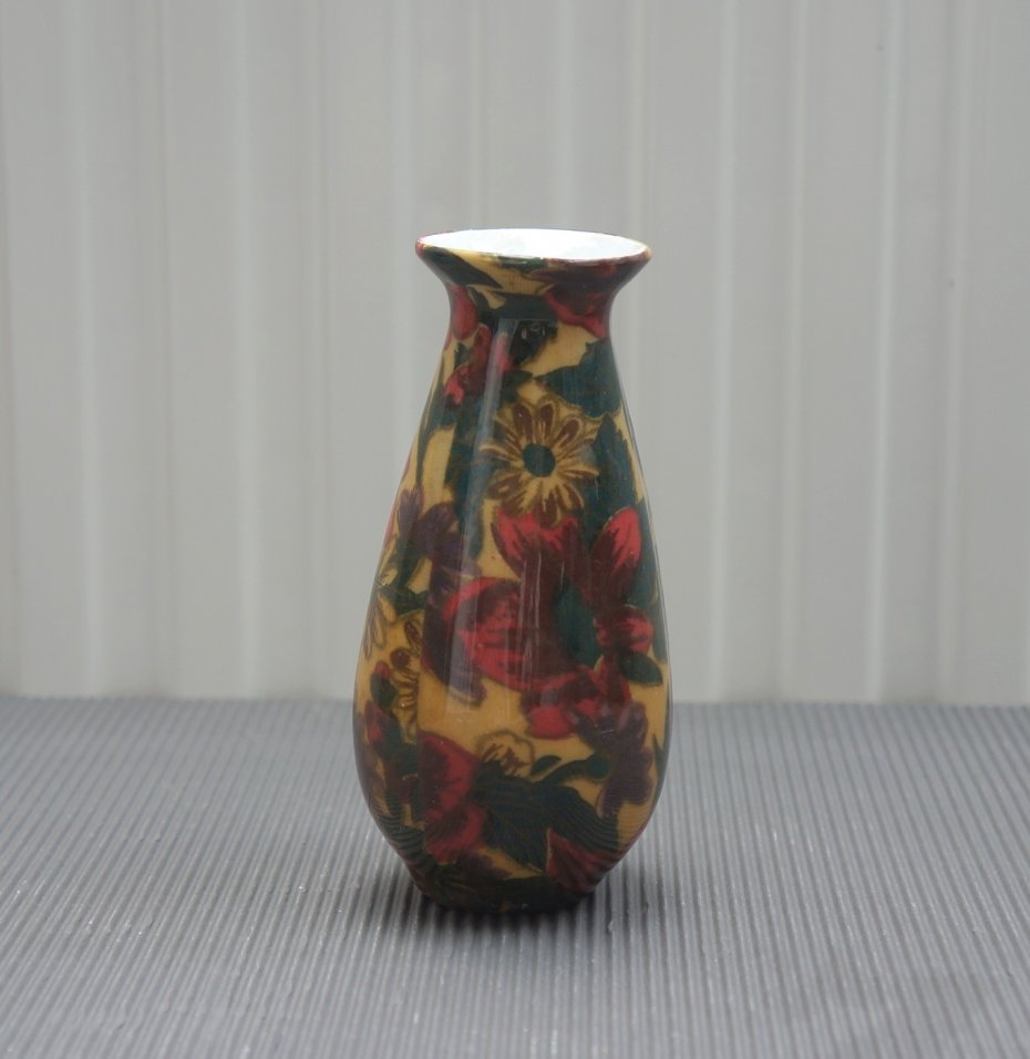 Mały wazonik. Ceramiczny. Ozdobiony kwiatowym wzorem w ciemnej tonacji. Vintage - lata 70.