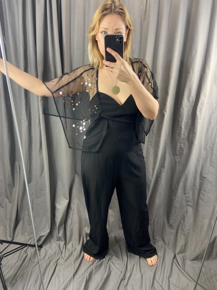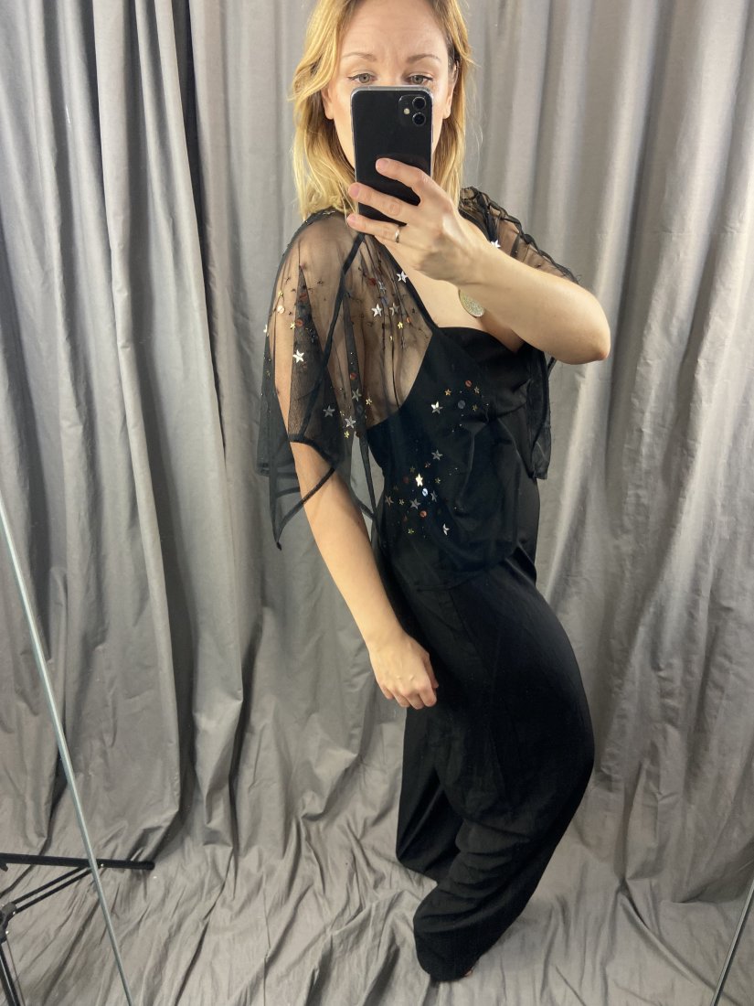 Kombinezon z gwieździstą pelerynką. Marki asos. Lekki, elegancki poliester.