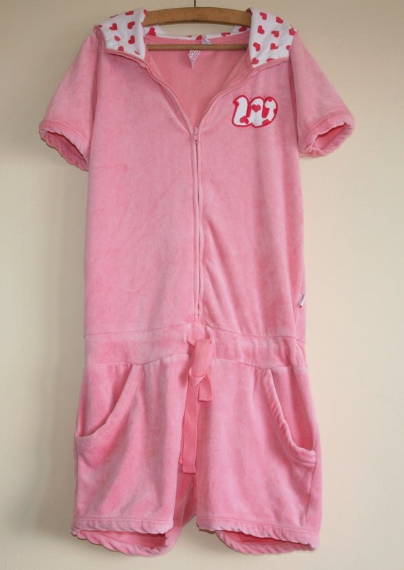 Śliczny welurowy kombinezon marki Wow. Materiał 80% bawełna 20% poliester. Piękny różowy kolor, zapięcie na zamek, i kaptur w serduszka. Stan bardzo dobry, jak nieużywany. Rozmiar z metki XS . Podaję wymiary mierzone na płasko;