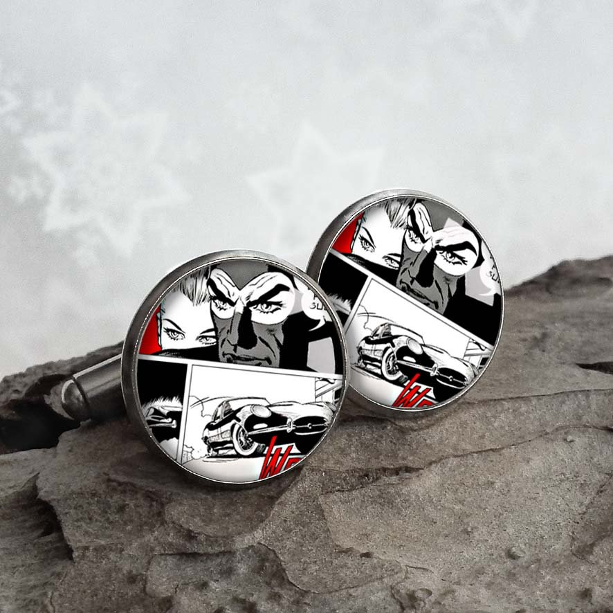 Unikatowe, ręcznie wykonane, modne spinki do mankietów z najwyższej jakości grafiką artystyczną zatopioną pod wypukłym szkłem, dzięki któremu obrazek wygląda jak 3D. Oprawa szkła z metalu antyalergicznego w kolorze srebra.