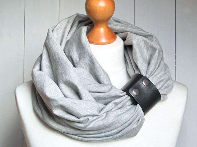 Dodatkową ozdobą jest skórzana zapinka, która daje wiele możliwości udrapowania komina/szala, ale można ją też wykorzystać jako ciekawą bransoletkę.