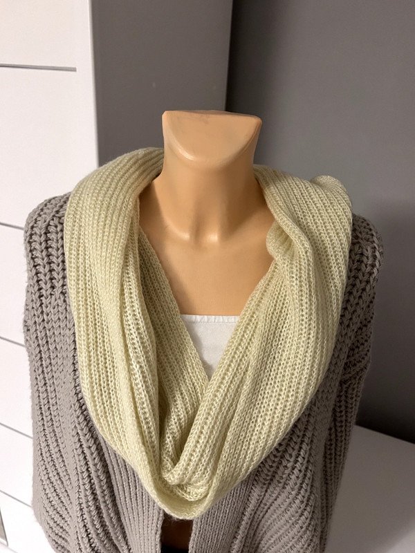Beżowy komin, można nosić na dwa sposoby. Idealne uzupełnienie stroju. Old money, szafa kapsułowa.