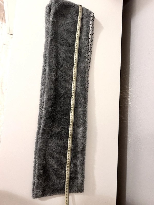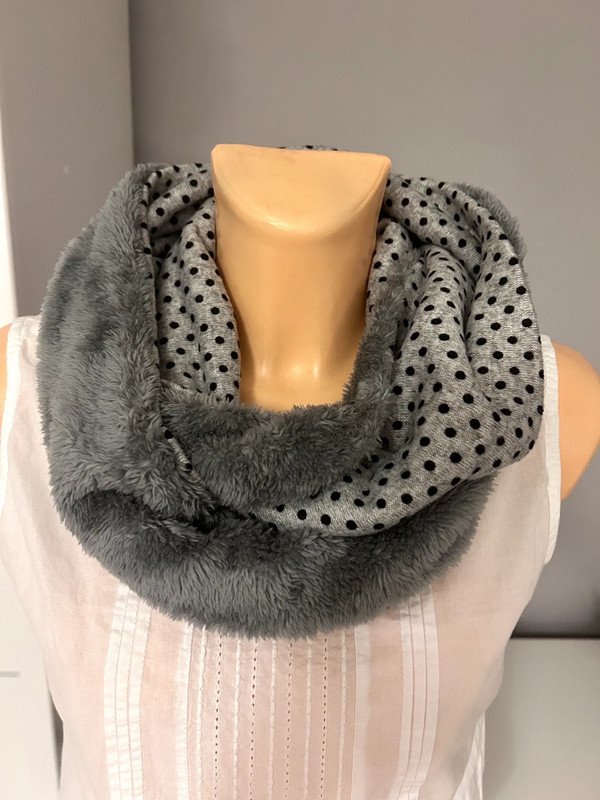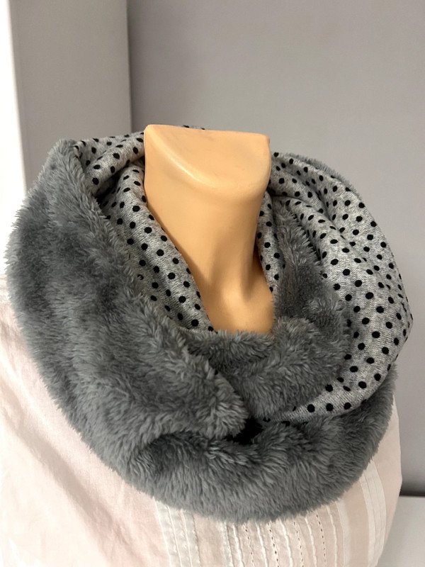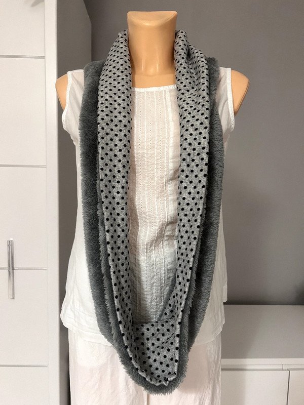 Kominek, komin, puchaty ciemny szary, w kropeczki czarne. Ciepły, na zimę.
