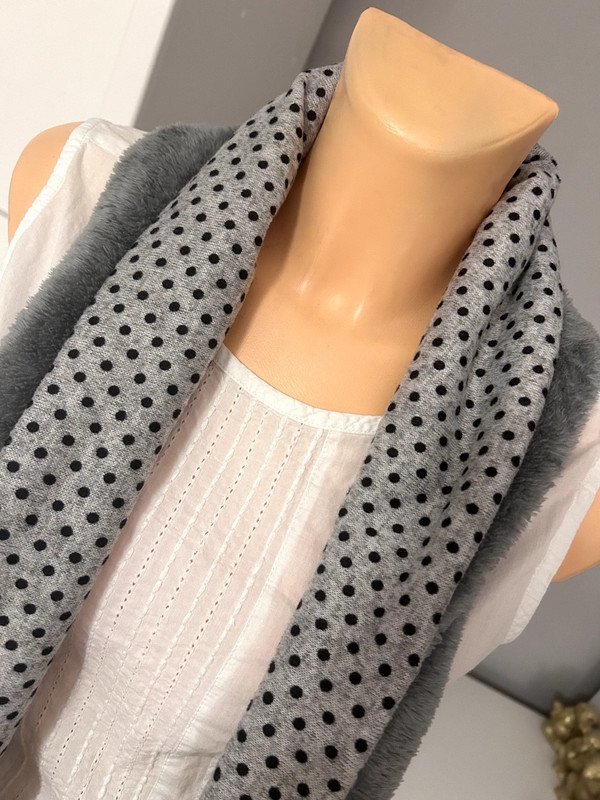 Kominek, komin, puchaty ciemny szary, w kropeczki czarne. Ciepły, na zimę.
