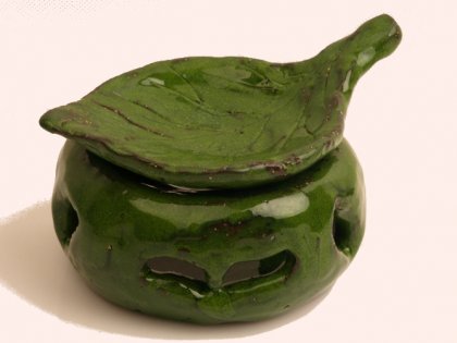 Ceramiczny kominek na olejki eteryczne. Wystarczy zapalić podgrzewacz ustawiony wewnątrz, a na górną półeczkę wlać kilka kropli olejku zapachowego i wodę. wysokość-11cm, średnica-13cm. polecam i zapraszam do mojej galerii