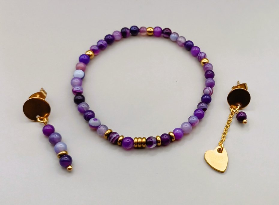 Komplet biżuterii ręcznie robionej z naturalnych kamieni agatu.