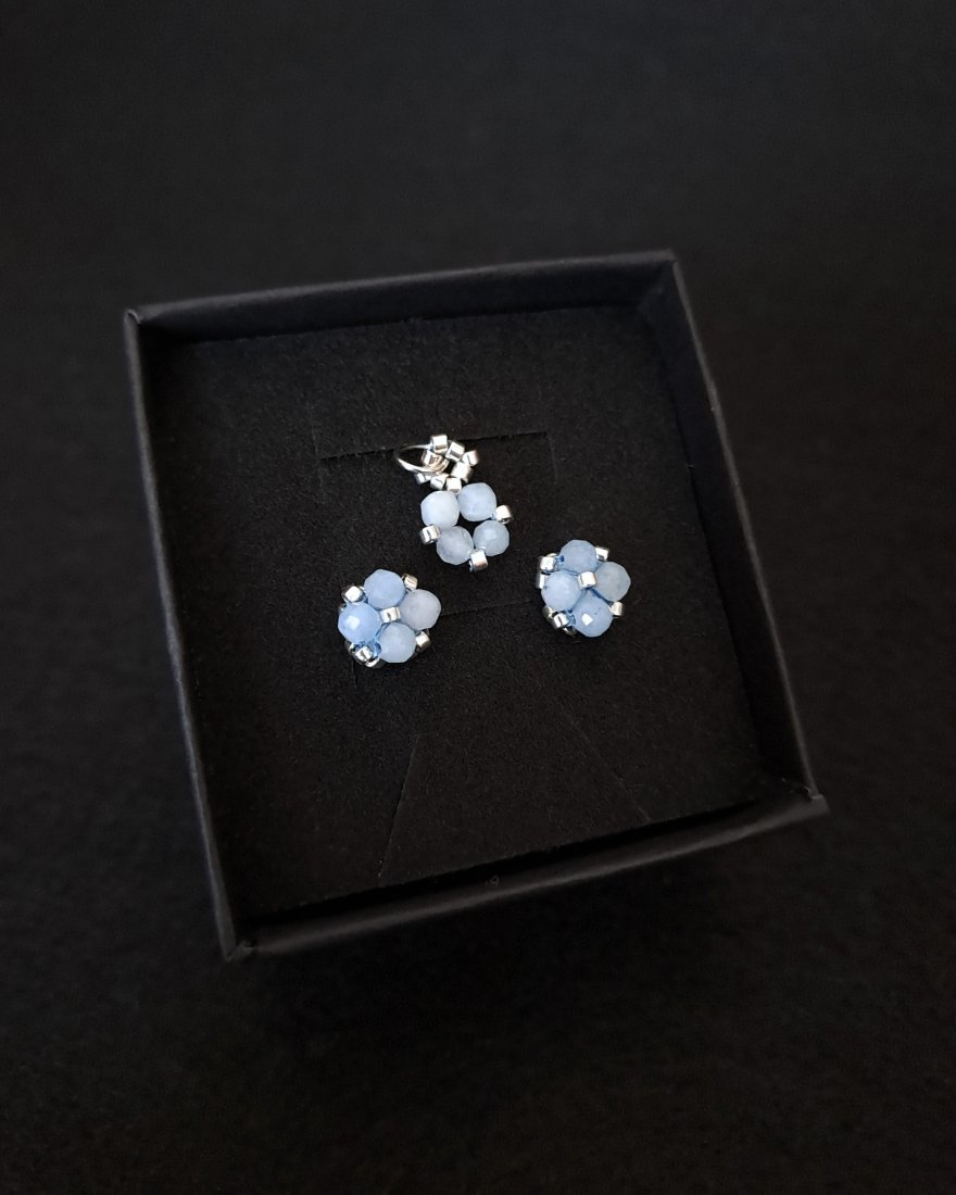 Delikatny komplet z akwamarynu to połączenie minimalistycznych sztyftów i pasującej zawieszki, które razem tworzą spójną, harmonijną całość. Subtelny odcień błękitu oraz srebrne detale nadają biżuterii świeży, spokojny charakter. To zestaw, który doskonale sprawdzi się zarówno na co dzień, jak i jako elegancki, nienachalny akcent do bardziej wyjątkowych stylizacji.