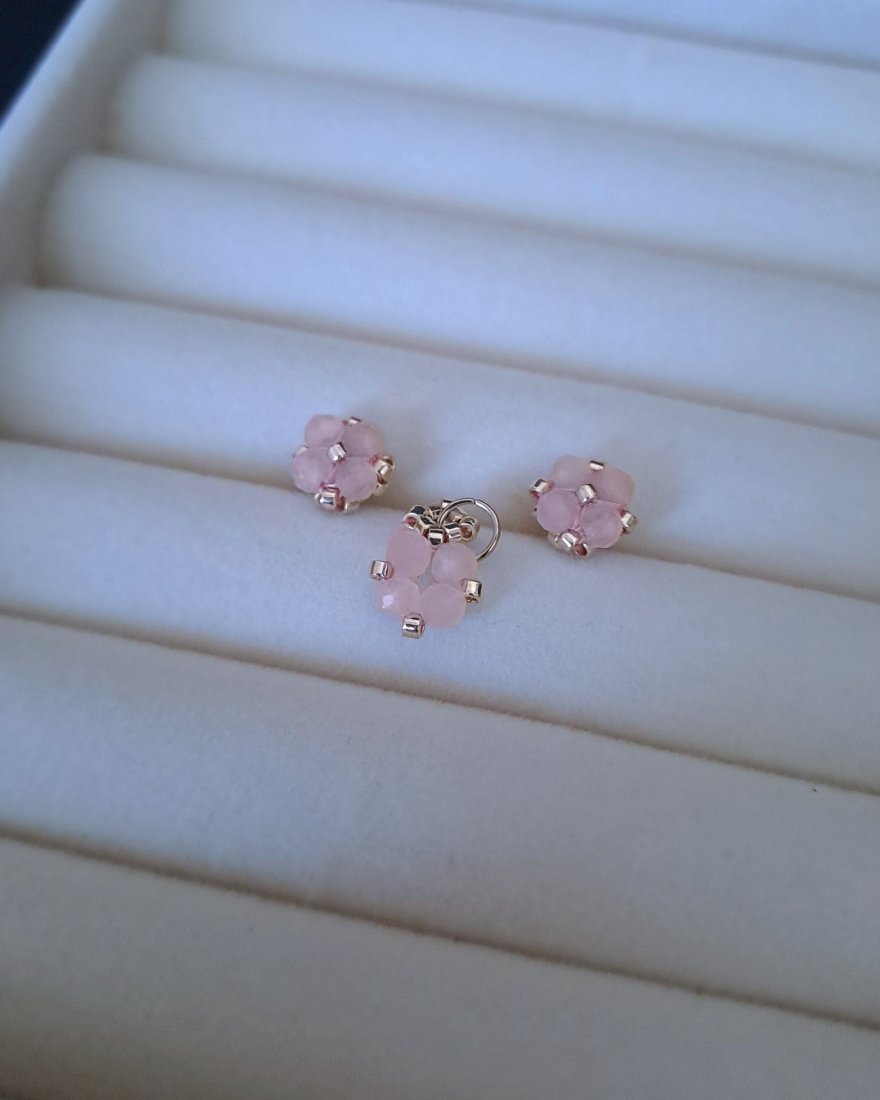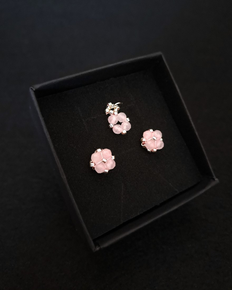 Tagi: #kolczyki i zawieszka, #kwarc różowy, #prezent dla dziewczynki, #walentynkowy prezent
