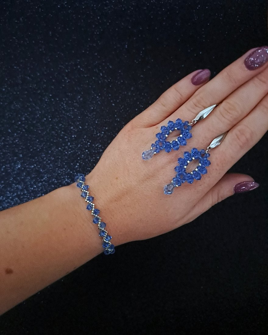 Tagi: #bransoletka z kryształków, #błękitny komplet biuterii, #długie wiszące kolczyki, #prezent dla niej na Święta