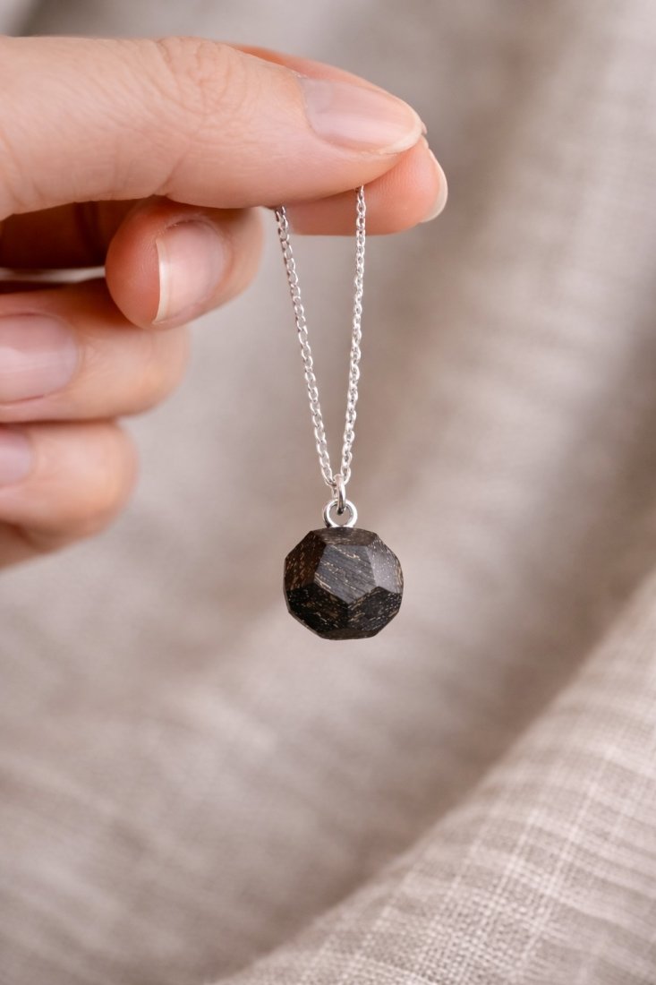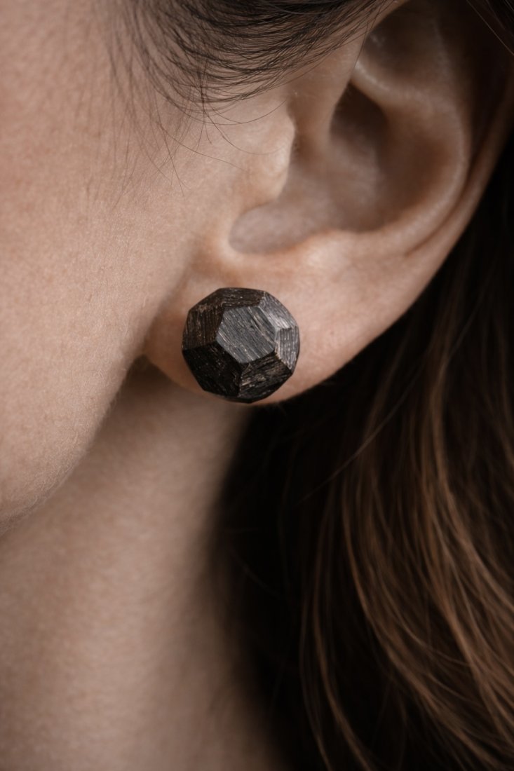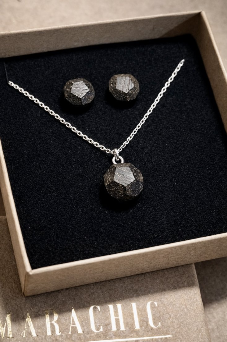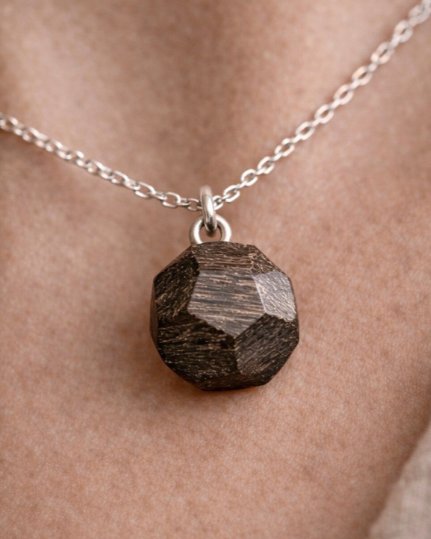 Zestaw biżuterii z drewna - drewniane diamenty wykonane ręcznie z czarnego dębu.