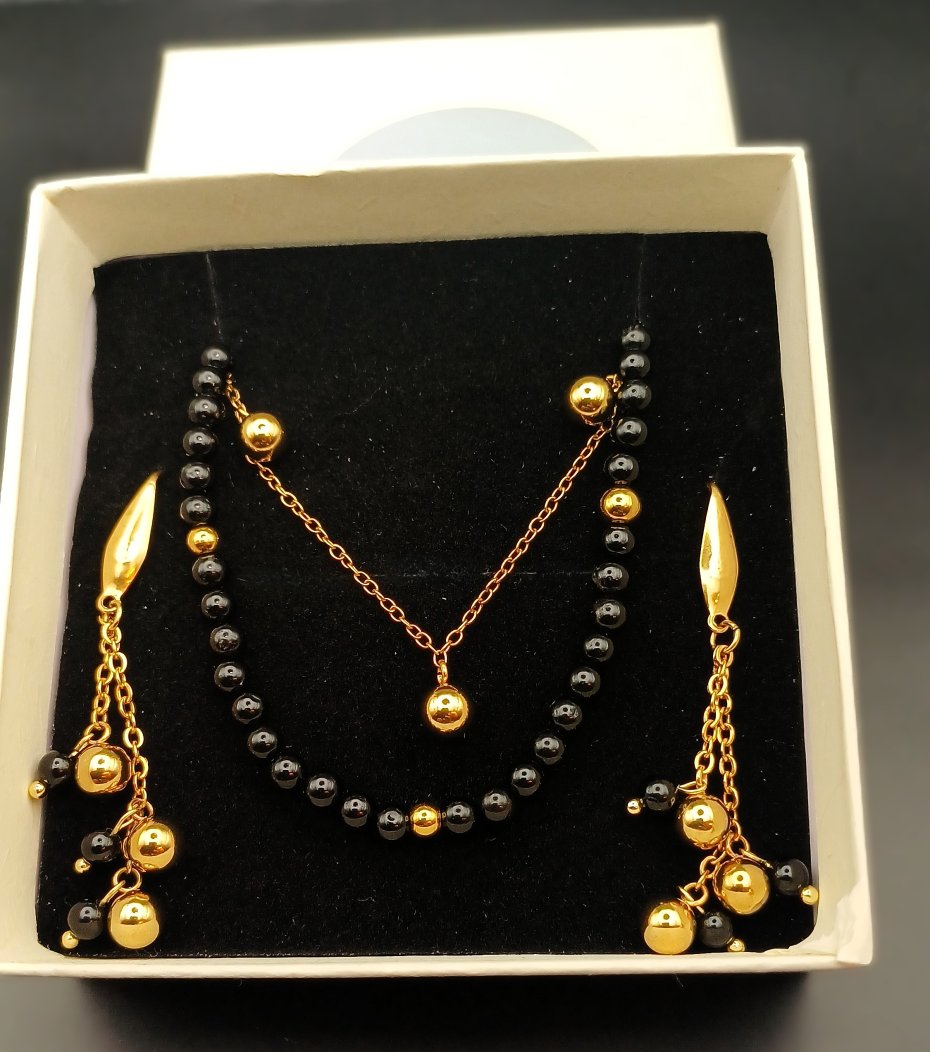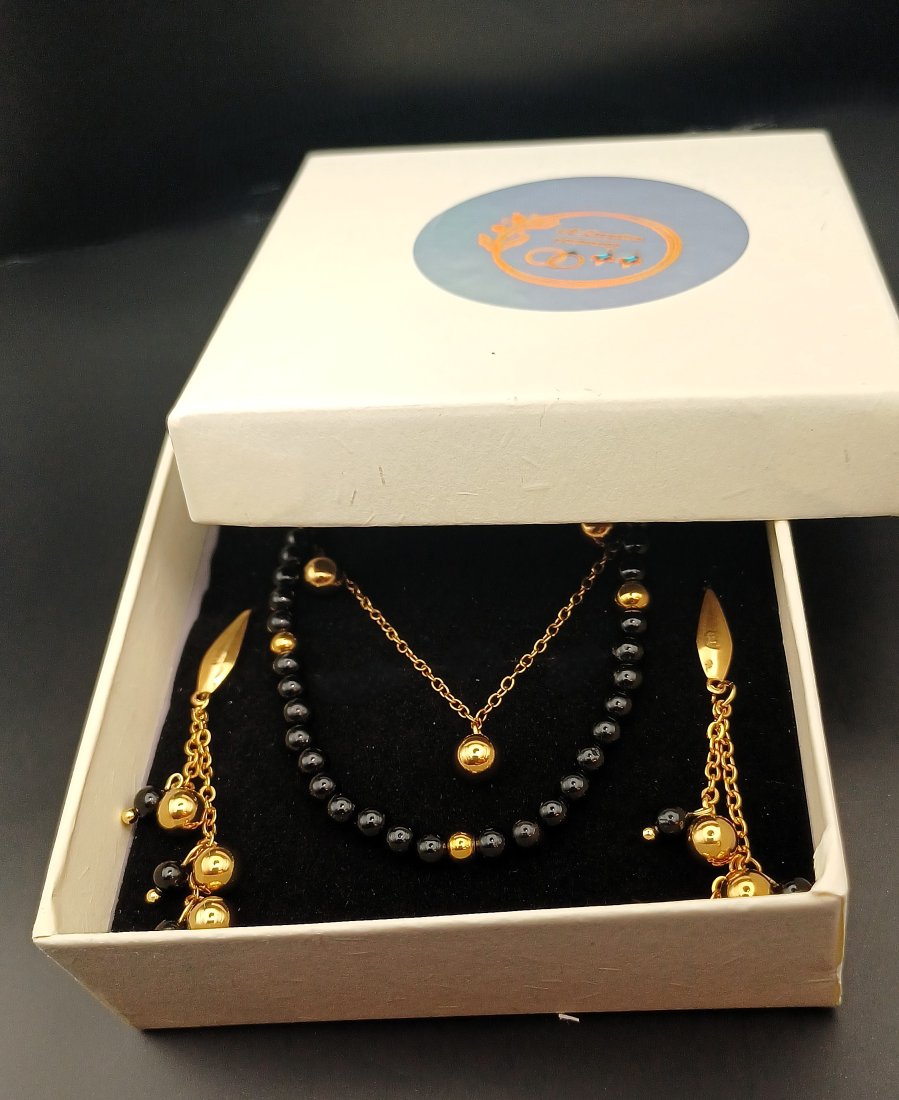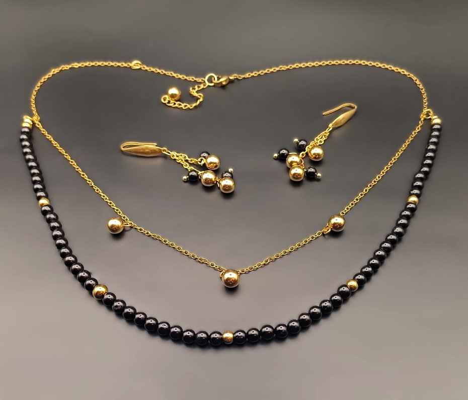 Komplet biżuterii ręcznie robionej z naturalnymi kamieniami turmalinu czarnego.