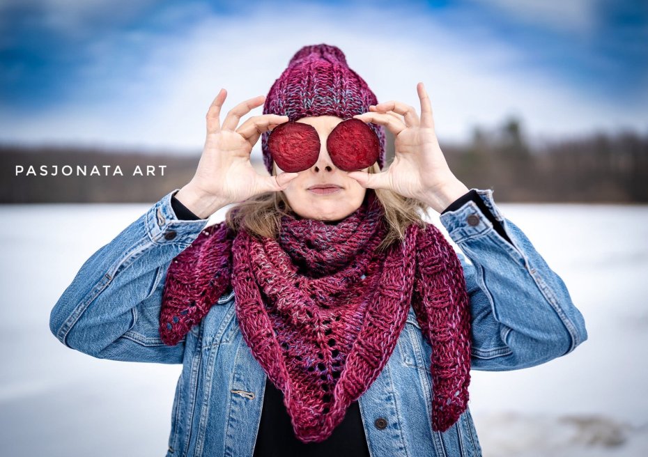 Chusta wykonana nadrukach. Ciepła, przyjemna w dotyku, nie podrażnia. Do chusty w komplecie jest czapka. Czapkę można wywinąć lub nosić jak na zdjęciu. Wszystko zależy od naszych upodobań.