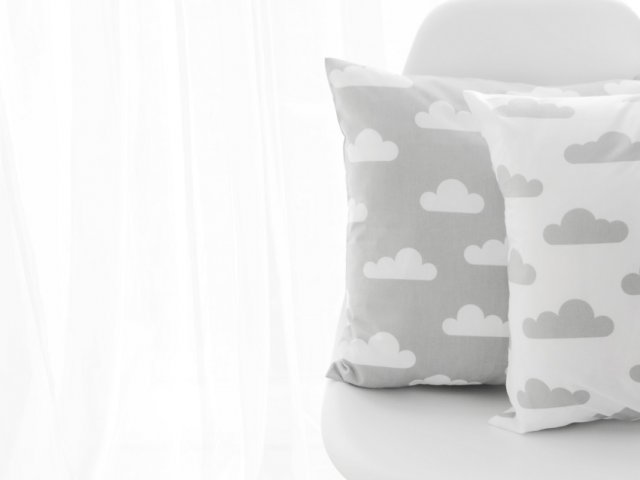 Komplet dwóch poszewek 100% bawełna, pasujących na poduszki o wymiarach 40x40cm. Kolory: biały, szary. Poszewki zamykane z tyłu na zakładkę i wiązane na wstążki. Komplet sprzedawany jest bez wkładu/wypełnienia.