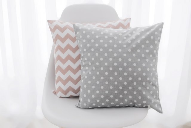 Komplet dwóch poszewek 100% bawełna, pasujących na poduszki o wymiarach 40x40cm. Kolory: biały,szary, pudrowy róż. Poszewki zamykane z tyłu na zakładkę i zawiązywane na wstążki. Komplet sprzedawany jest bez wkładu/wsadu.