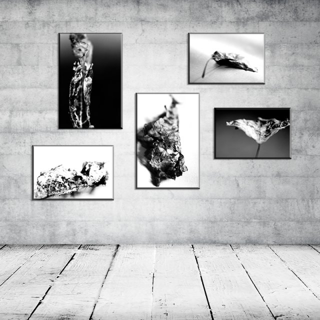 Pięć fotografii o wymiarach: dwie 30 x 40cm oraz trzy 21 x 30cm. Wydruk na profesjonalnym papierze o wytrzymałości 70 lat. Prace oprawione w ramy - czarna, aluminiowa, satynowa rama. Gotowe do powieszenia na ścianie.