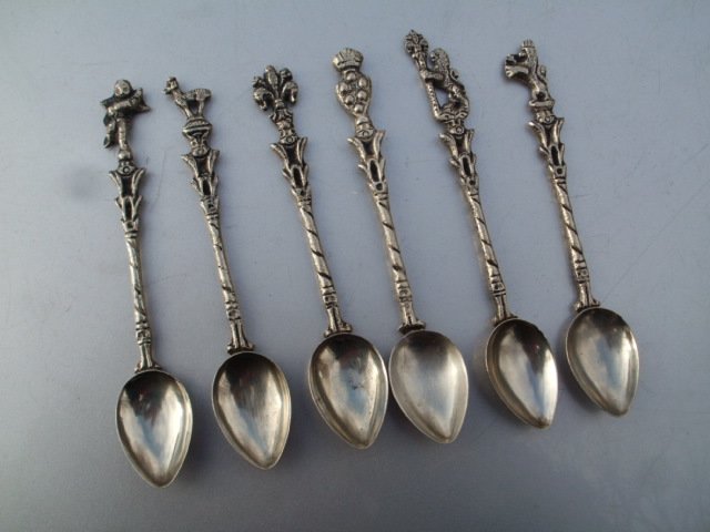 Komplet - 6 sztuk - małych łyżeczek. Arcy ciekawe i szalenie oryginalne. Kawowe, ale też do przypraw sprawdzą się doskonale. Fakturowa rączka, każda inna, jak herbowe insygnia...obustronnie zdobione. Ciekawe, inne...10 x nie całe 2 Stan zachowania bardzo dobry minus. Drobne ślady użytkowania. Bez żadnych większych wad.
