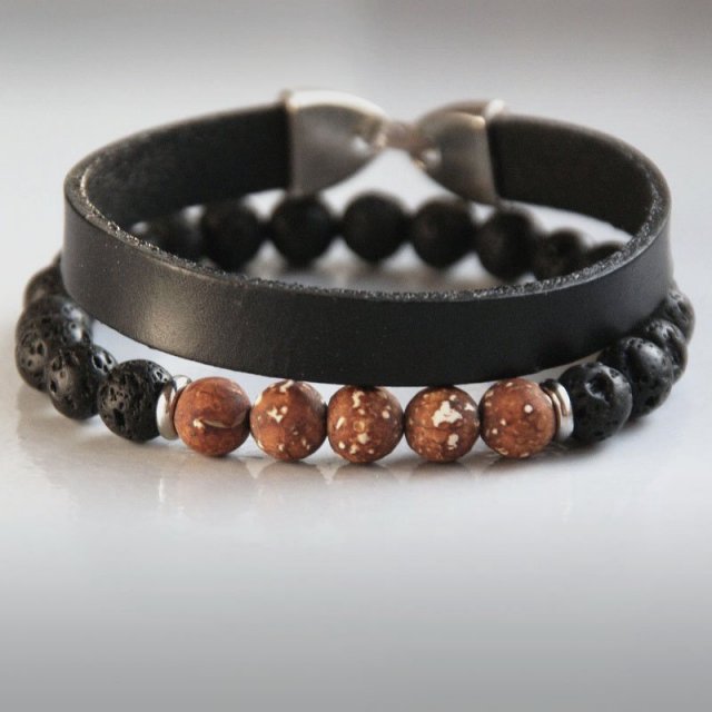ZDĄŻYMY? ZDĄŻYMY! :D choćbym miała na rzęsach stanąć, wszystkie zamówienia opłacone do rana do poniedziałku wysyłam POLECONYM PRIORYTETEM (szybciej niż kurierem - serio!) we wt. rano i śr./ czw. są na miejscu!!!! ... NOWA, męska kolekcja!!! TUTAJ: KOMPLET W NIŻSZEJ CENIE (wartość zestawu 126zł)... 2 proste, lecz ciekawe bransoletki wykonane z: 1)rzemienia płaskiego ze SKÓRY NATURALNEJ (10mm) w kolorze CZARNYM. WYGODNE, BEZPIECZNE ZAPIĘCIE (zobacz zdjęcia) - zapięcie TZW. ZEGARKOWE (antyalergiczne). obw. wewnętrzny: 19cm. PASUJE NA NADGARSTEK standardowy (ok.18,5cm)... 2)bransoletka na solidnej lince elastycznej - wykonana z porowatej lawy wulkanicznej oraz agatu ANTYCZNEGO w kolorze rudobrązowym, z jasnymi plamkami (8mm), z dodatkiem 2 pierścieni ze stali szlachetnej. obw. wewnętrzny: 19cm. komplet stanowić będzie idealny prezent na Dzień Chłopca/ na Gwiazdkę / Walentynki itp. BIŻUTERIA ZAWSZE PODRÓŻUJE W OZDOBNYM OPAKOWANIU :-)