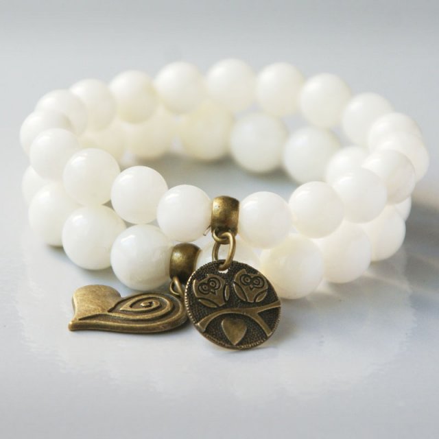 KOMPLET : 2 śliczne i niezwykle efektowne bransoletki na solidnej, lince elastycznej, wykonane z pięknej muszli w kolorze BIAŁO-KREMOWYM (kule 12 i 10mm) oraz metalowych elementów w kolorze antycznego złota. ... OBW. WEWNĘTRZNY BRANSOLETEK: 16,3 i 16cm - PASUJĄ NA NADGARSTEK 16cm..... BIŻUTERIA ZAWSZE PODRÓŻUJE W OZDOBNYM OPAKOWANIU :-)
