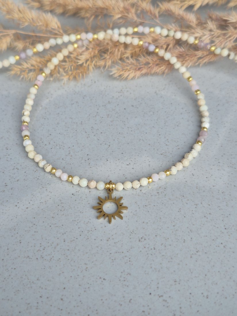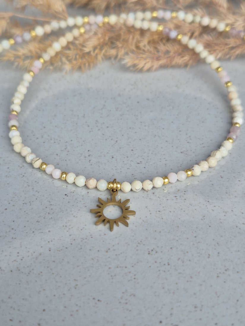 Zawieszka SŁOŃCE: Centralnym punktem naszyjnika jest piękna zawieszka w kształcie słońca, symbolizująca witalność i wewnętrzną moc.
