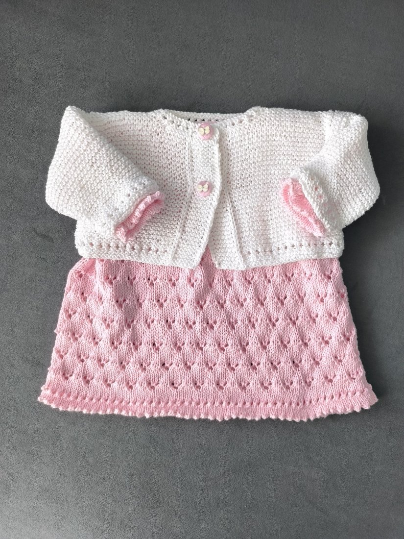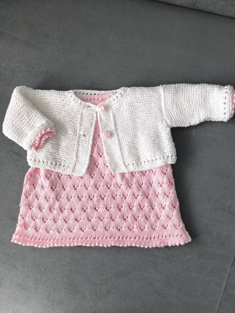 Komplecik niemowlęcy - sukienka z długim rękawem i krótki sweterek dla małej elegantki :)