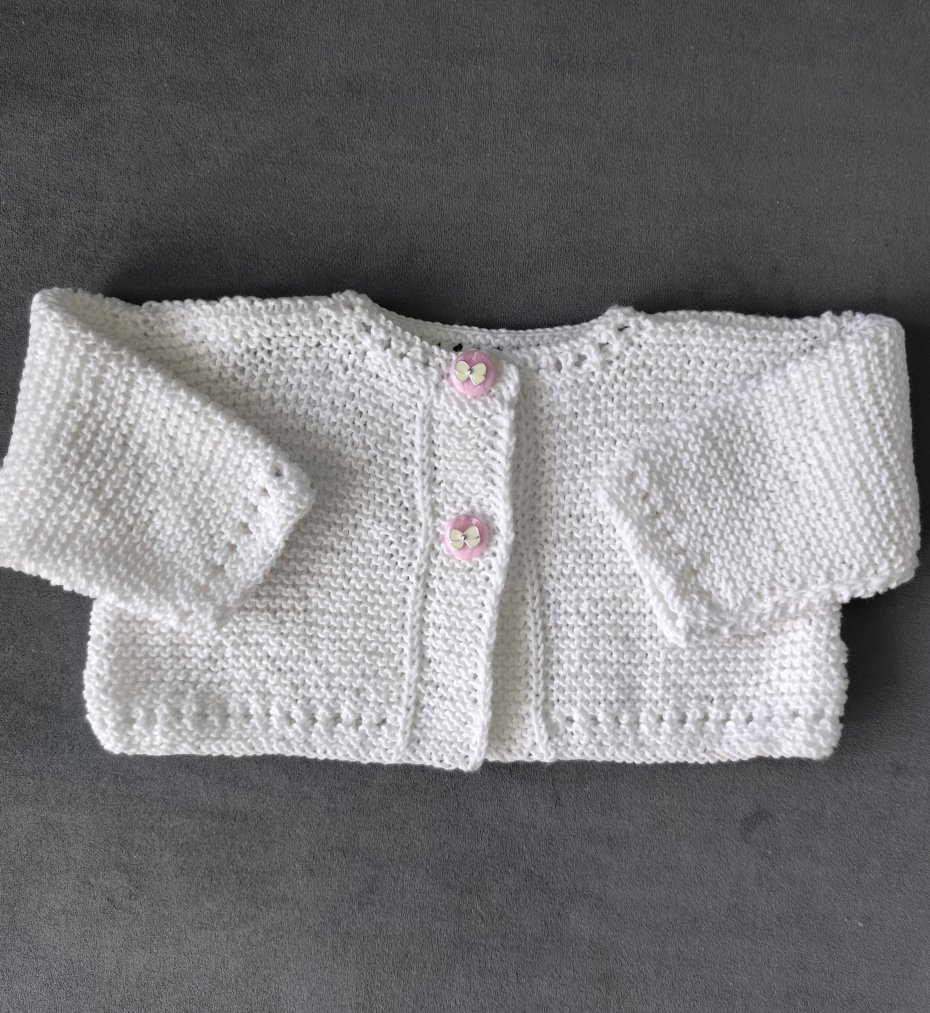Wykonany w całości ręcznie na drutach i na szydełku z mięciutkiej włóczki bawełnianej przeznaczonej dla dzieci:)