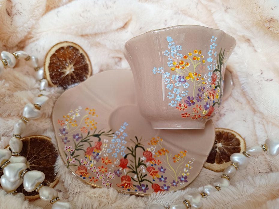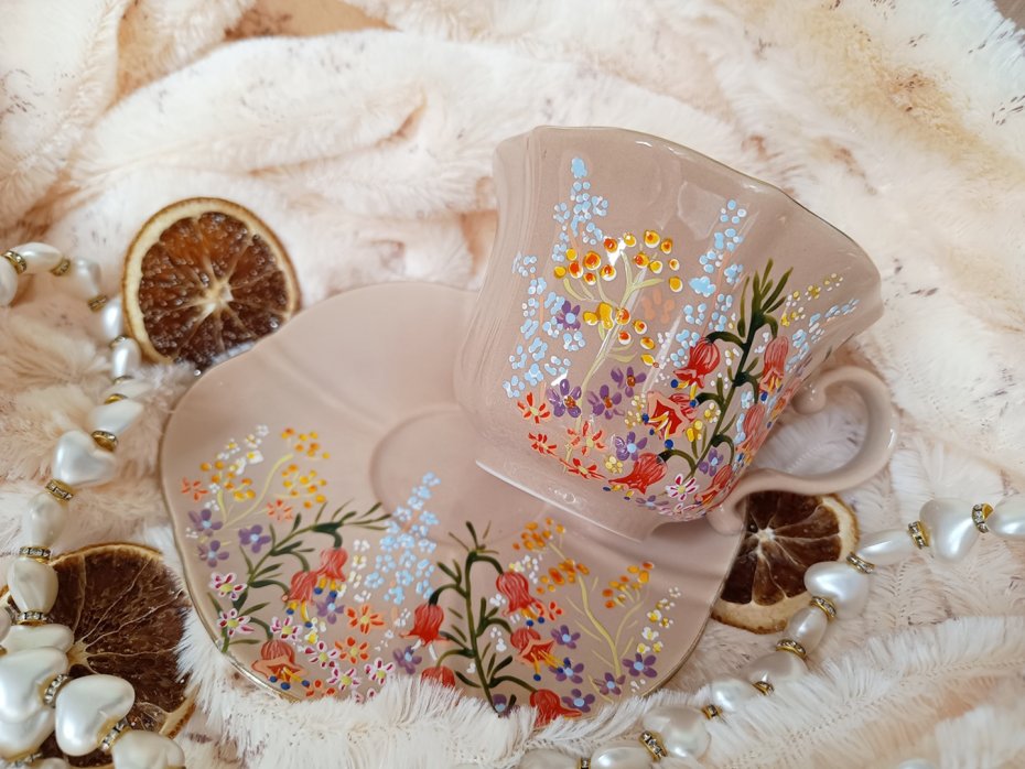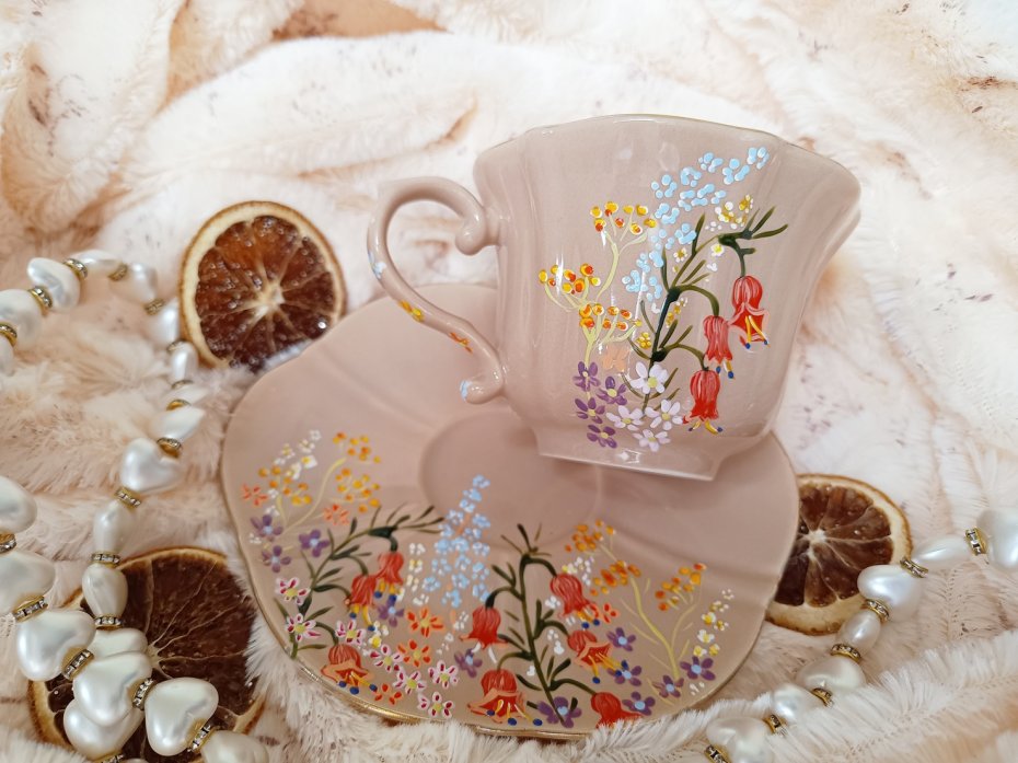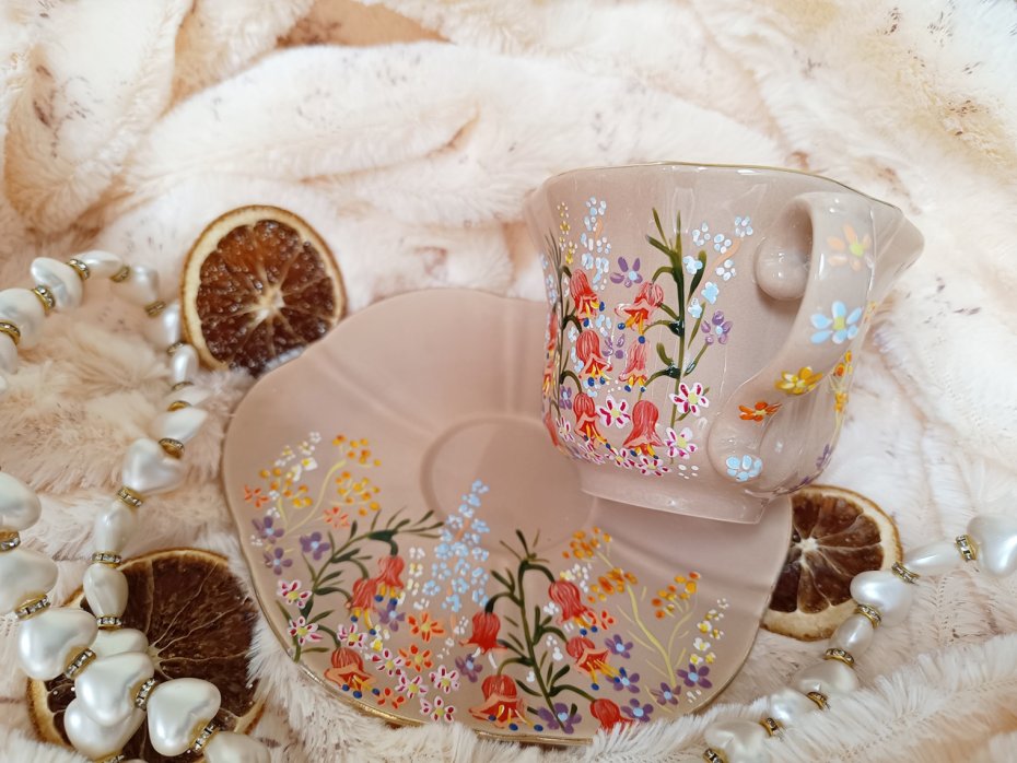Kubek malowany wiele godzin z wielką troską o wszelkie szczegóły z miłości do natury, z miłości do tego co piękne i ulotne..