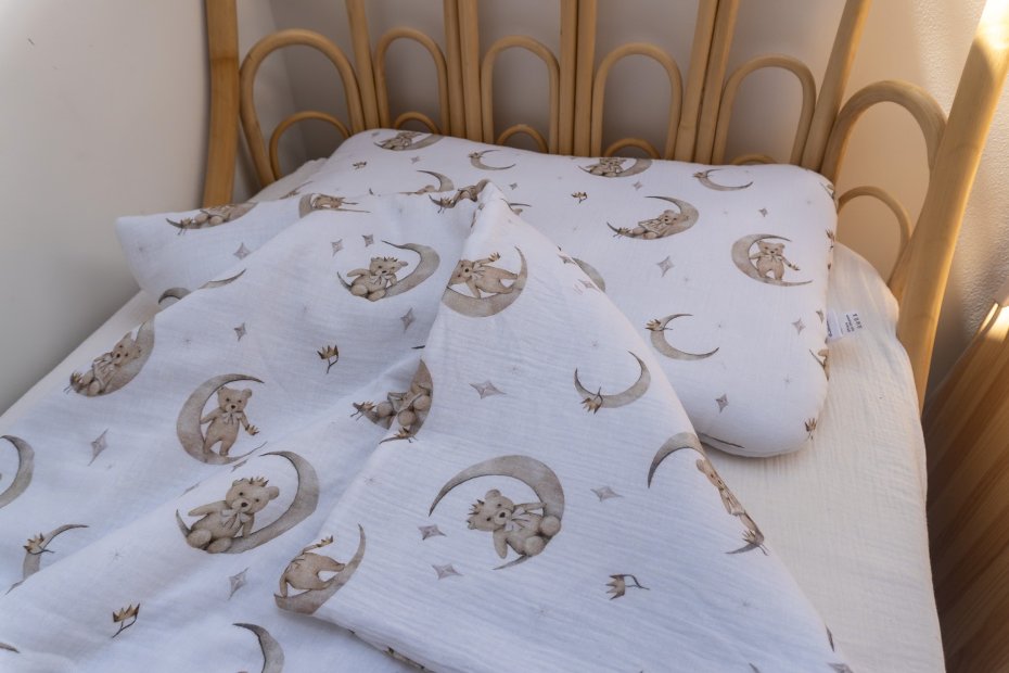 KOMPLET POŚCIELI DO ŁÓŻECZKA BAWEŁNA MUŚLIN KOŁDRA PODUSZKA POŚCIEL BAWEŁNIANA Z WYPEŁNIENIEM
