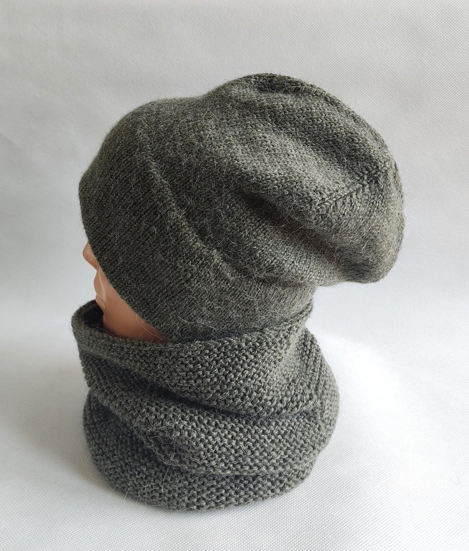Komplet: czapka + komin, ręcznie robiony na drutach.