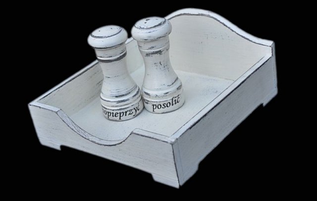 Niezbędny komplet na każdy stół i w każdej kuchni - pojemnik na serwetki i pojemniki na sól i pieprz.