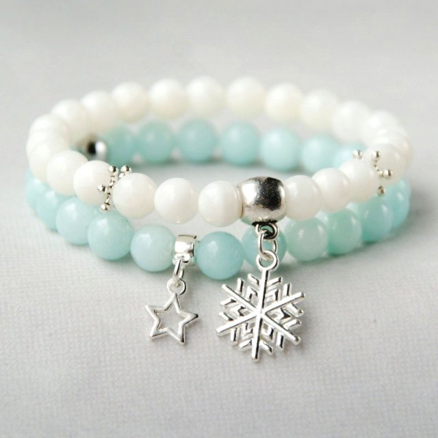 CENA PROMOCYJNA!!! cudny KOMPLET BRANSOLETEK - PREZENT IDEALNY ;-) ... 2 bransoletki : śliczne bransoletki na solidnej lince elastycznej, wykonane z białej muszli (biel/krem) (8mm) oraz jasno-miętowego jadeitu (8mm) z dodatkiem kuli hematytu i metalowych elementów .. .JADEIT - Pomocny jest w schorzeniach nerek i pęcherza .Pomaga przy bólach kręgosłupa. Odpręża, daje spokojny sen, pomocny jest w medytacji . Wzmacnia koncentrację.... KOMPLET PASUJE NA NADGARSTEK 16-17cm (na życzenie mogę wykonać mniejszy ;-) .... BIŻUTERIA ZAWSZE PODRÓŻUJE W OZDOBNYM OPAKOWANIU handmade :-)
